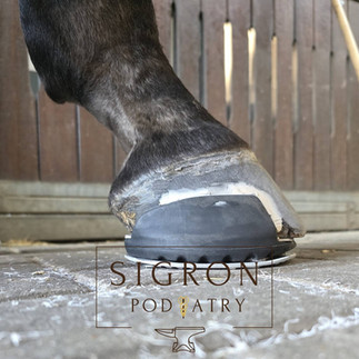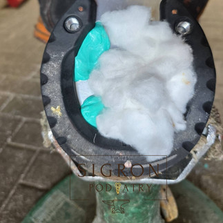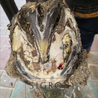 Here's one I shod in Tierklinik Lüsche in Germany the other day, with pics after initial cleaning and cutting and final shoeing. Since the medial wall didn't allow nailing.