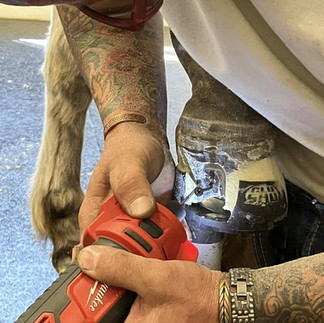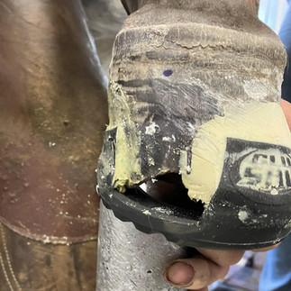 I added soft impression material for hoof capsule stability. I also applied a hospital treatment plate for extra protection. I always support my foot before any type of resection’s.